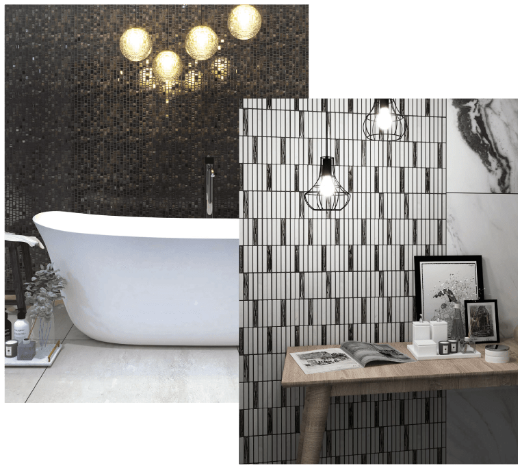 Muzze Da – The Essence of Tiles – are specially selected and crafted mosaics by Italian designers to highlight Niro Granite and Zirconio tile collection and provide an architectural solutions for the wall and floor of your dream home. Muzze Da’s mosaics are produced uniquely in different materials, colour tones, shapes and sizes to meet the design concept and ambience that you will aspire to enhance your living spaces. It was created to add highlights on wall design that can be used on featured wall or as backsplash in kitchen area.